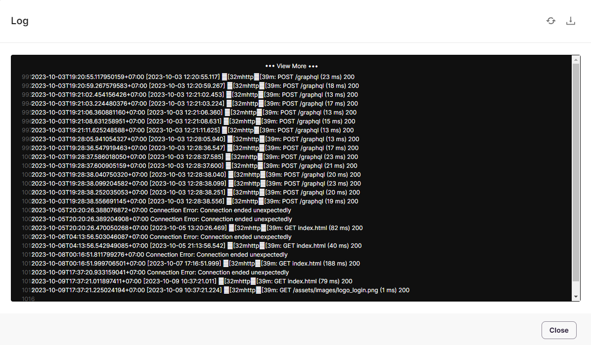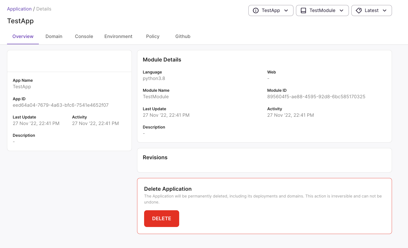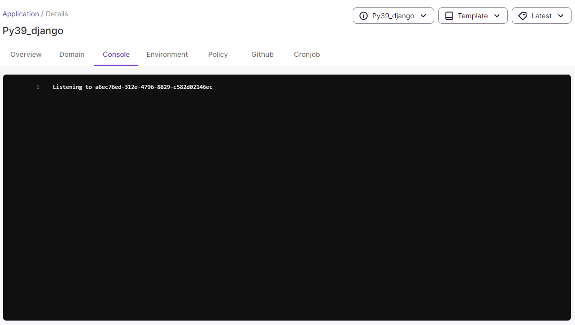 Log - View your revision's logs. Any print statements in your application will be visible here