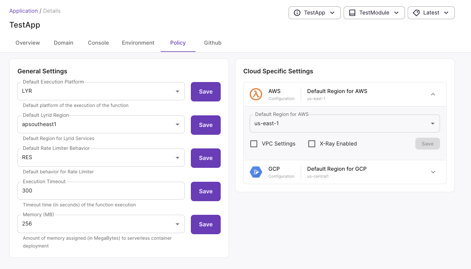 Users could change the general setting and cloud specific settings. Press "Save" after making changes.