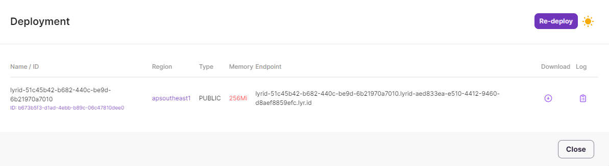Users can see all the applications they have deployed via Lyrid on the home dashboard or in the application page.