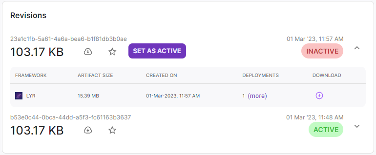 Your application and module can have up to 2 latest revisions. You can choose to favorite up to 1 revision, which will save your current deployment so that it won't get replaced on future submissions.