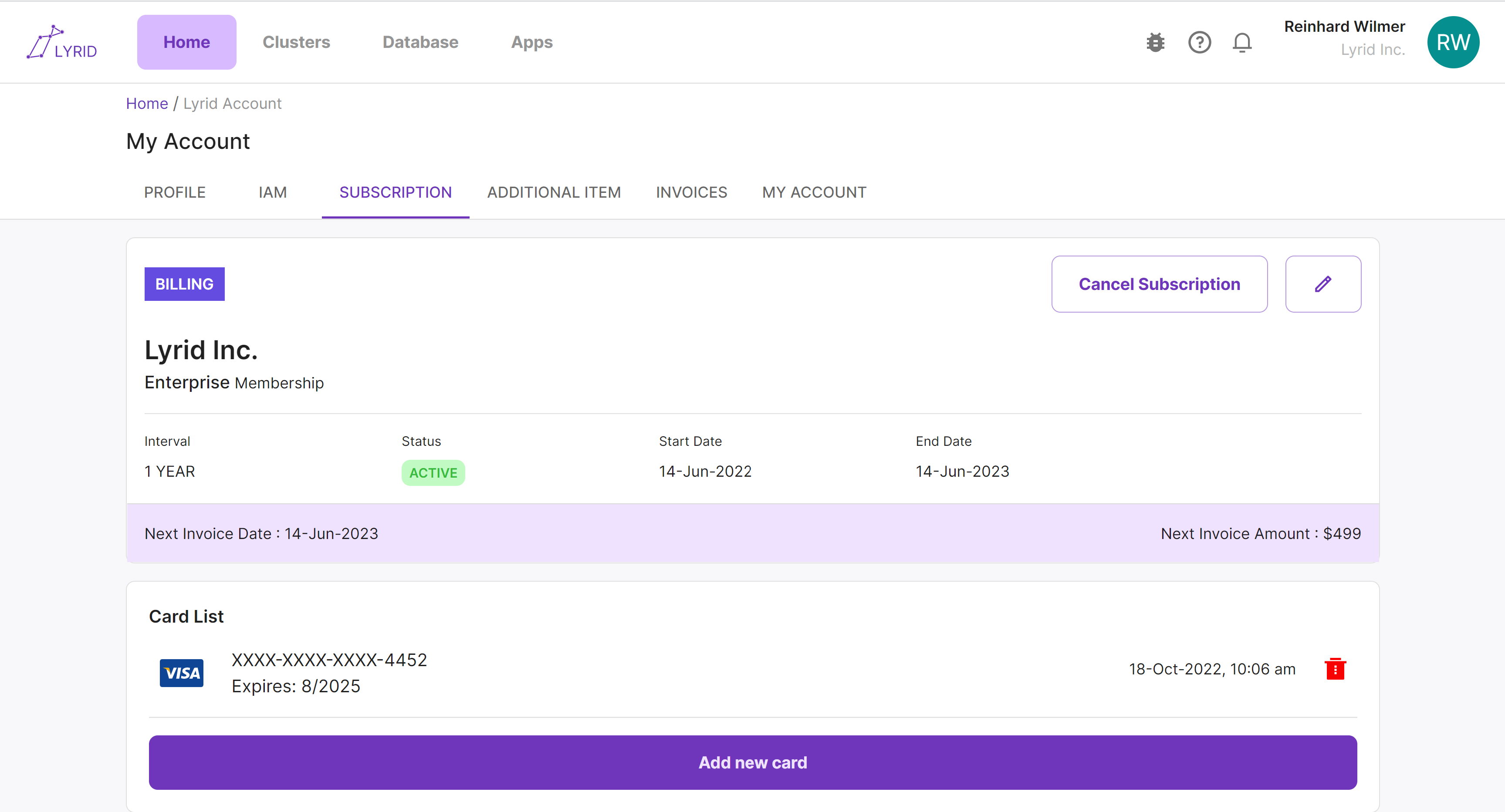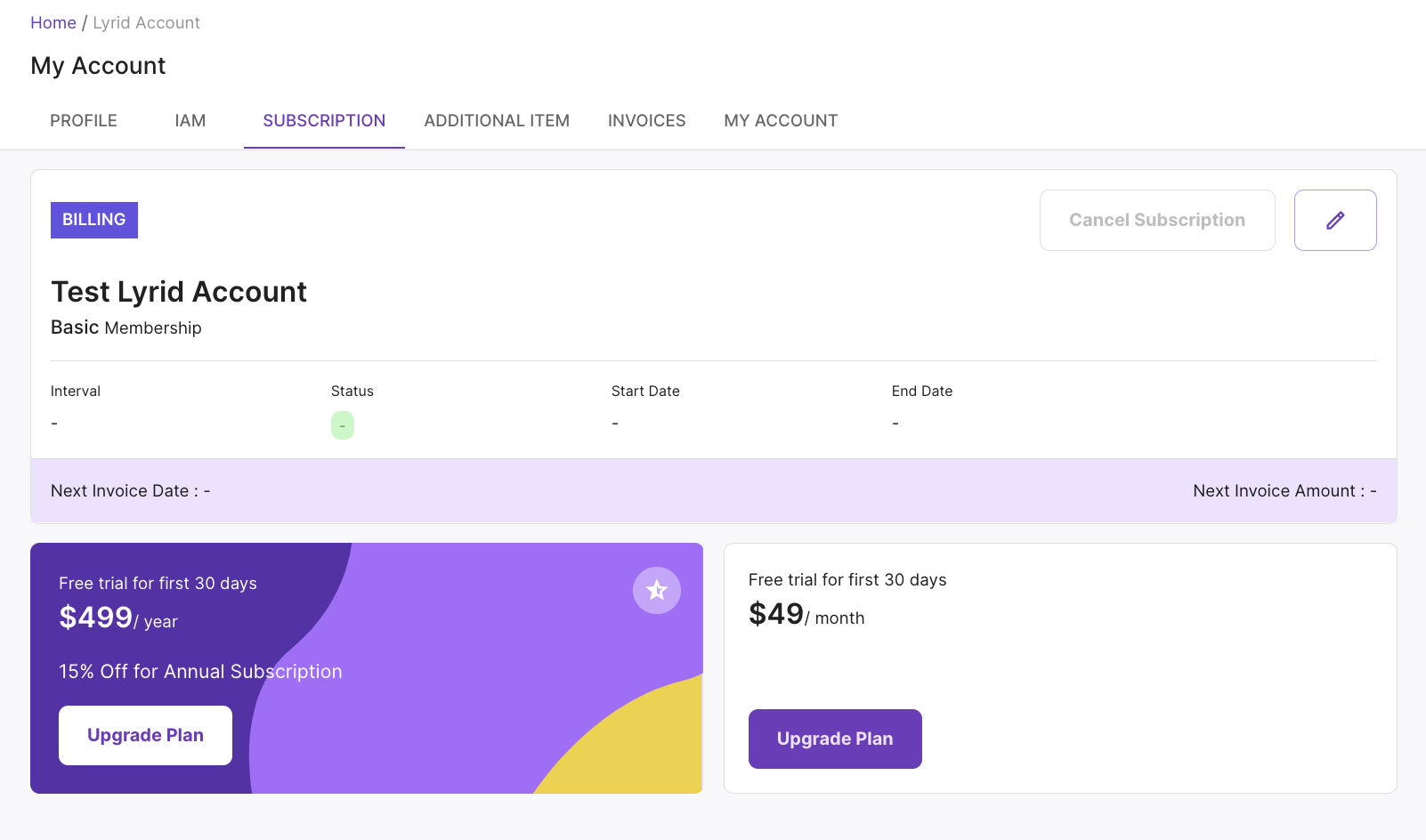 Lyrid Web Application / My Account / Subscription