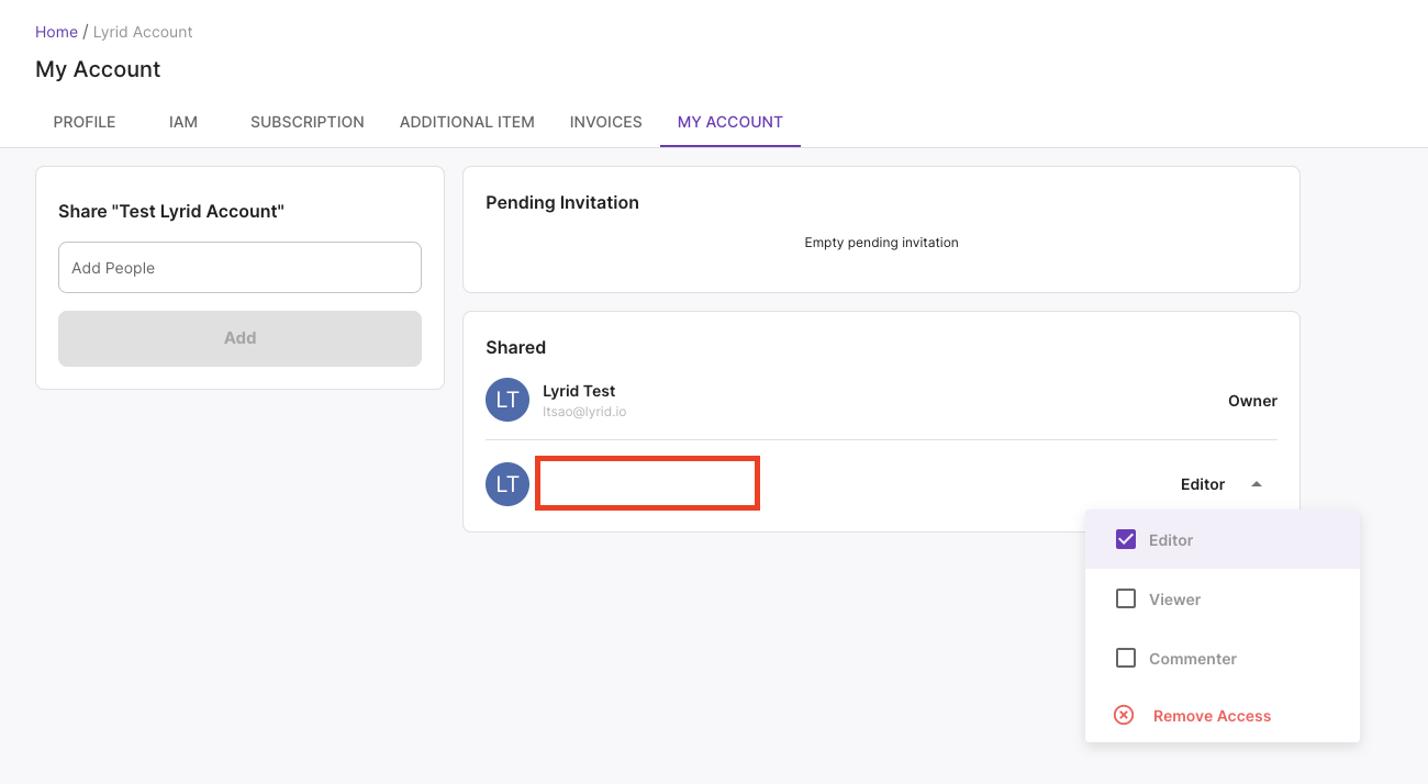 The owner of the project can see the list of account they have shared their project with as well as their roles. The owner can change their access or remove them.