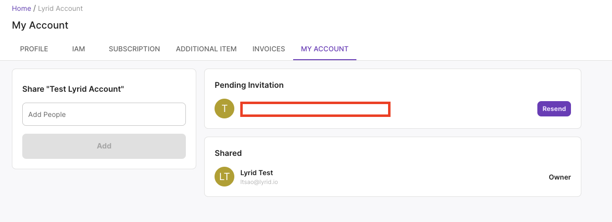 Pending Invitation shows a list of people you have sent invitation to. Users could resend the invitation email again.